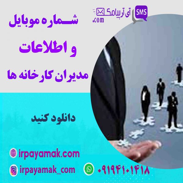 شماره موبایل کارخانه های تولید مواد غذایی ، مواد شیمیایی و معدنی ، صنایع پلاستیکی ، تزریق پلاستیک ، نفت گاز پتروشیمی ، ابزار و یراق ، ماشین سازی ، آهن آلات ، اتوماسیون صنعتی ، تراشکاری ، صنعت چوب و غیره